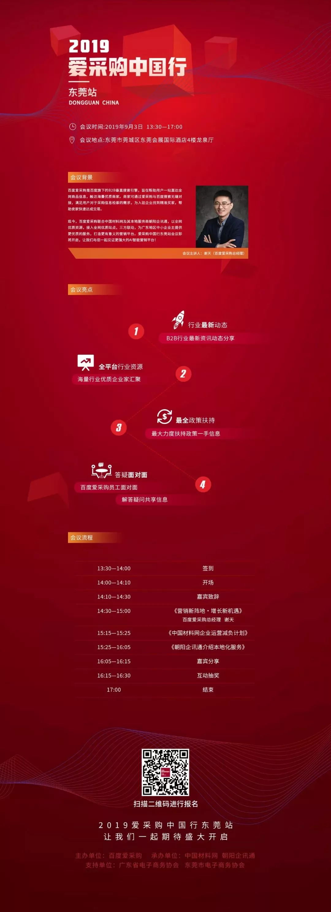 百度愛(ài)采購(gòu)攜手朝陽(yáng)企訊通共舉東莞盛會(huì),手機(jī)端將成企業(yè)掌握關(guān)鍵2019年9月3日,百度愛(ài)采購(gòu)將聯(lián)合朝陽(yáng)企訊通、中國(guó)材料網(wǎng),在東莞會(huì)展國(guó)際酒店舉辦行業(yè)峰會(huì),屆時(shí)將由百度愛(ài)采購(gòu)總經(jīng)理謝天給大家分享新的機(jī)遇,還有幸邀請(qǐng)廣東商會(huì)和東莞商會(huì)、中國(guó)材料網(wǎng)和朝陽(yáng)企訊通的主要負(fù)責(zé)人到場(chǎng)。9月3日,百度愛(ài)采購(gòu)將聯(lián)合朝陽(yáng)企訊通、中國(guó)材料網(wǎng),在東莞會(huì)展國(guó)際酒店舉辦行業(yè)峰會(huì),屆時(shí)將由百度愛(ài)采購(gòu)總經(jīng)理謝天給大家分享新的機(jī)遇,還有幸邀請(qǐng)廣東商會(huì)和東莞商會(huì)、中國(guó)材料網(wǎng)和朝陽(yáng)企訊通的主要負(fù)責(zé)人到場(chǎng)。